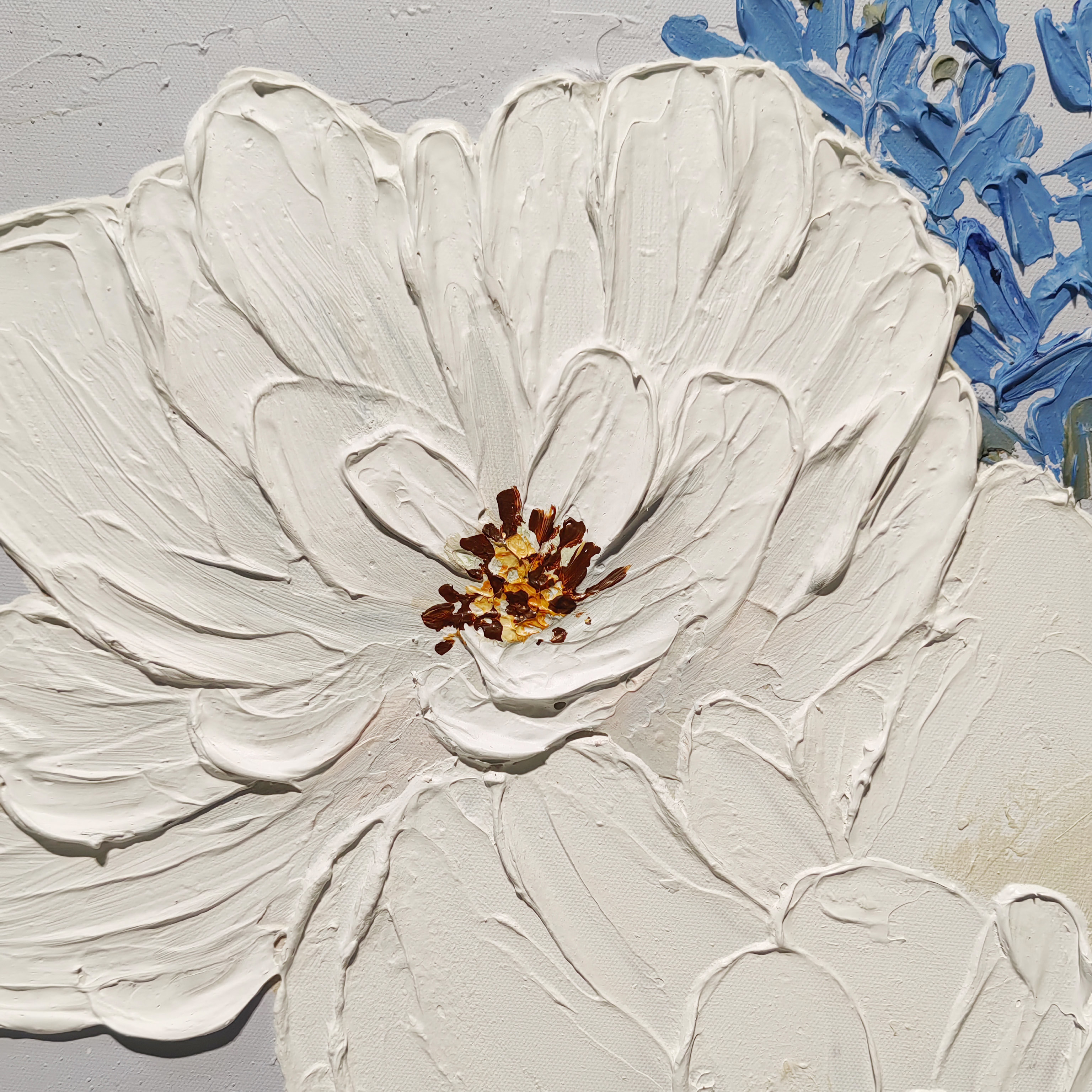 Χειρογραφία χρώματος μοντέρνου υφασμένου καμβά με ελαιόλαδο Λευκό λουλούδι για καθιστικό Οικιακή διακόσμηση 100% χειροποίητο και χωρίς πλαίσιο 6