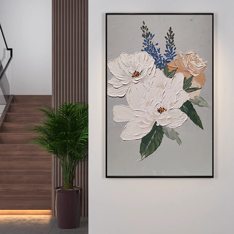 Χειρογραφία χρώματος μοντέρνου υφασμένου καμβά με ελαιόλαδο Λευκό λουλούδι για καθιστικό Οικιακή διακόσμηση 100% χειροποίητο και χωρίς πλαίσιο 7